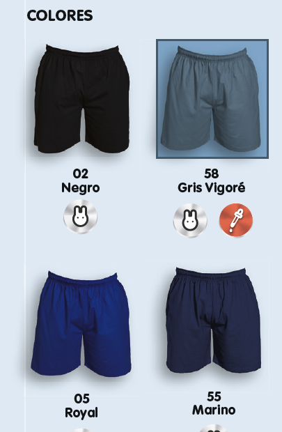 | Color | Azúl Marino, Azul Royal, Gris Vigoré, Negro |