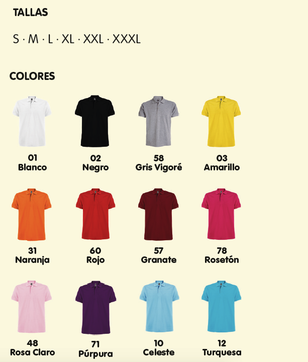 | Talla | S, M, L, XL, XXL, XXXL |